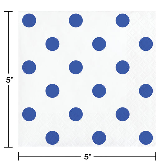 Cobalt Blue Polka Dots and Stripes Beverage Napkins 192 ct