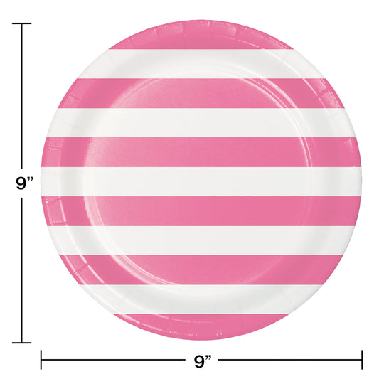 Candy Pink Polka Dots and Stripes Dinner Plates 96 ct