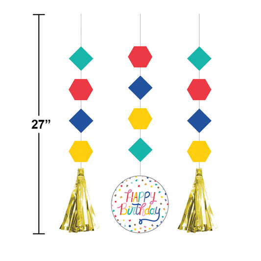 Bubbly Birthday Hanging Fans with Tassels 36 ct