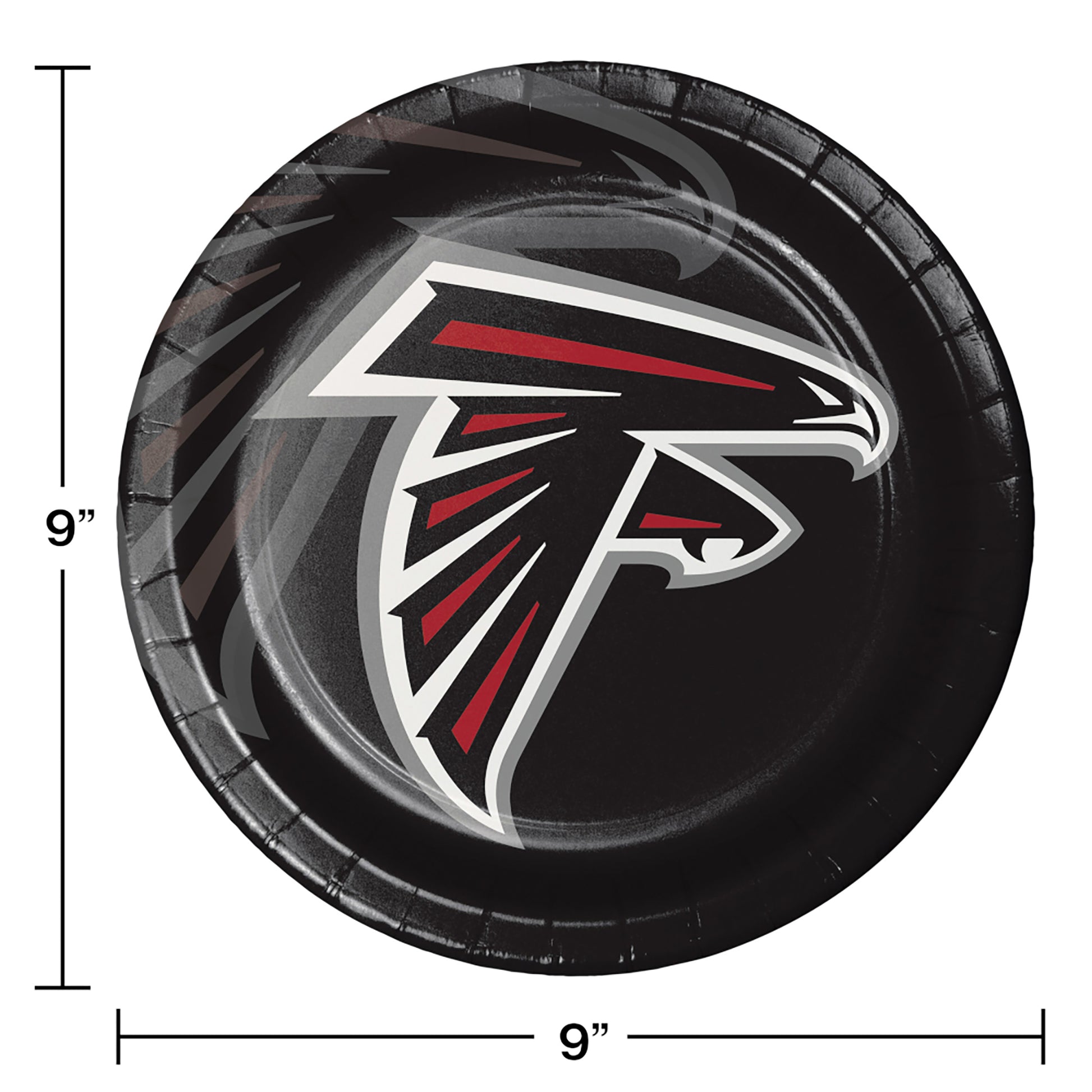 Cheer on your favorite NFL team with our wholesale Atlanta Falcons Dinner Plates. Fans will love to serve themselves hotdogs and hamburgers on these wholesale paper plates displaying a red and black logo. Stock your shelves with paper plates and the entire line of Atlanta Falcons tableware for a complete party offering. Being the ultimate fan hub has never been easier with our bulk Falcons dinner plates.