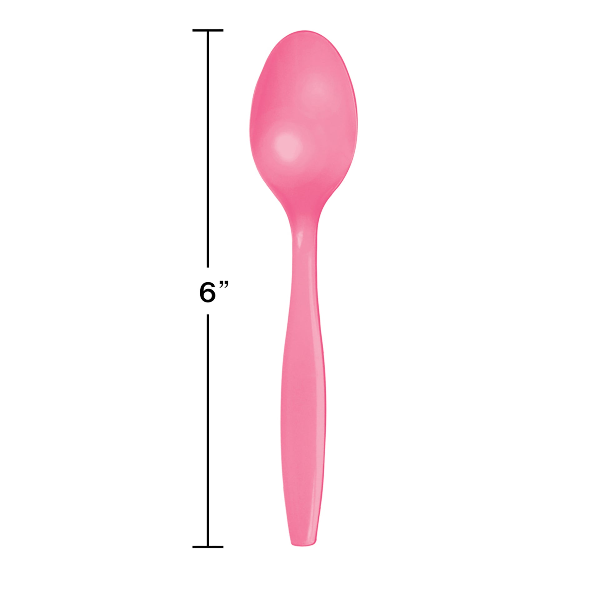 Celebrate in style with our Candy Pink Plastic Spoons. These candy pink spoons will add a charming touch of light pink to any buffet or dining table. Our disposable serving spoons are made from premium plastic to ensure durability through an entire meal service. Our heavy duty plastic silverware offers quick and easy post-party clean-up, too; simply throw away or recycle these disposable serving spoons after use. Darling and durable, our candy pink plastic cutlery is available at a great price to ensure significant savings for wholesale buyers who need budget-friendly candy pink cutlery. Pair these candy pink plastic spoons with plastic cutlery in other colors for a really enchanting look.