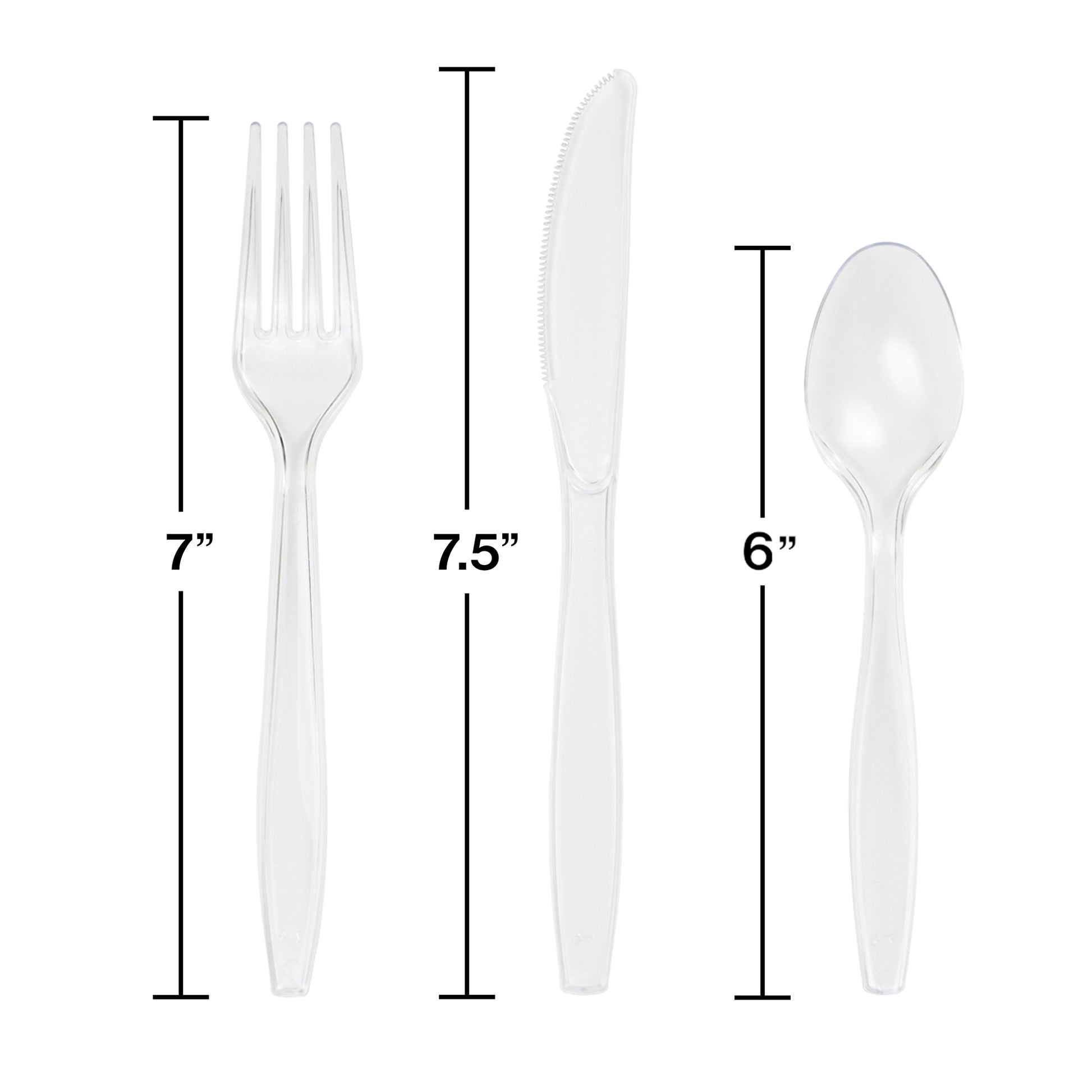 Made of premium plastic for a quality product, the Clear Plastic Cutlery is sturdy and durable and is a great alternative to using standard silverware service. The clear color works well with almost any table ensemble and wont compete with the event's decorations and color palette. Included in each retail ready package are 24 pieces: 8 forks, 8 spoons, and 8 knives. 12 packages per case.
