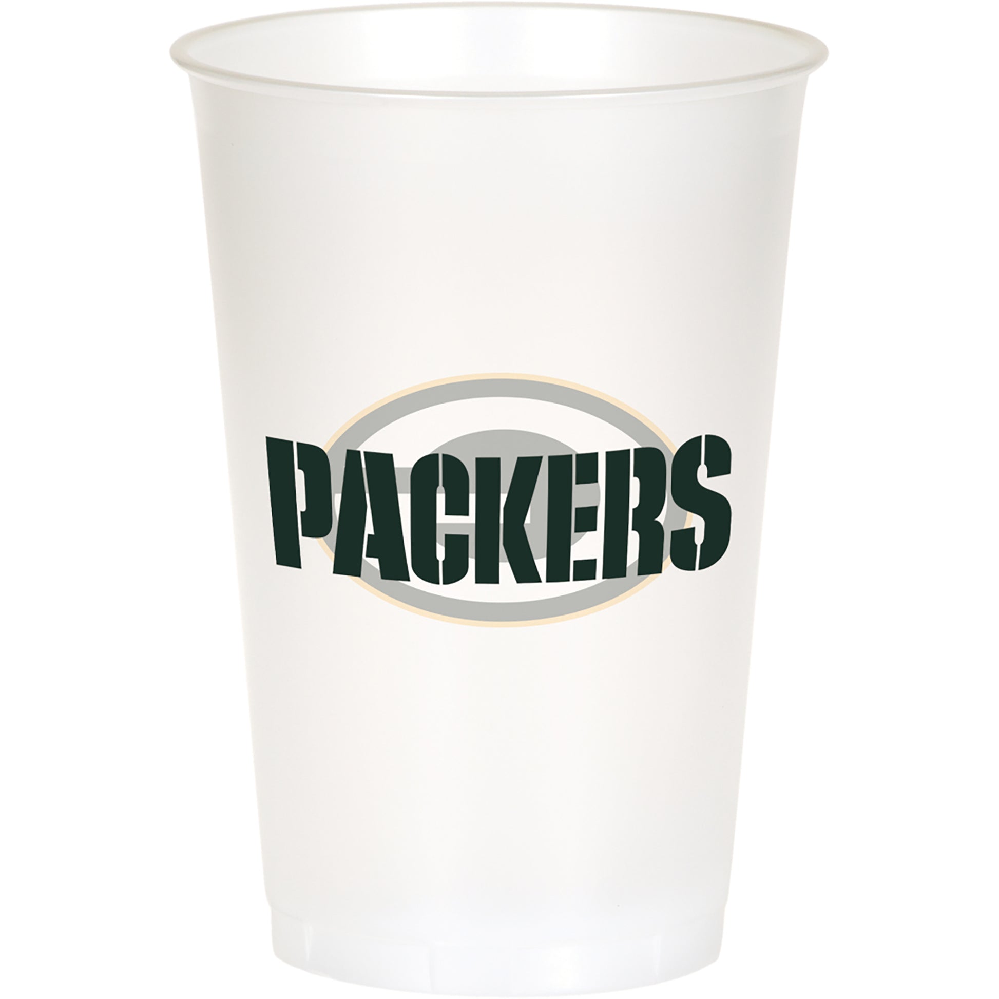Pumped up Packers fans are ready to have a drink to celebrate the big win. Officially licensed Green Bay Packers Plastic Cups feature the team's "G" logo and a "Packers" headline in green lettering. The durable cups are constructed from #6 recyclable plastic and are ideal for use with cold beverages including soda, beer, and specialty cocktails. Safe for use in beer gardens or at outdoor events, the festive cups hold up to 20 ounces and are sold 8 per package with 12 packages per case.