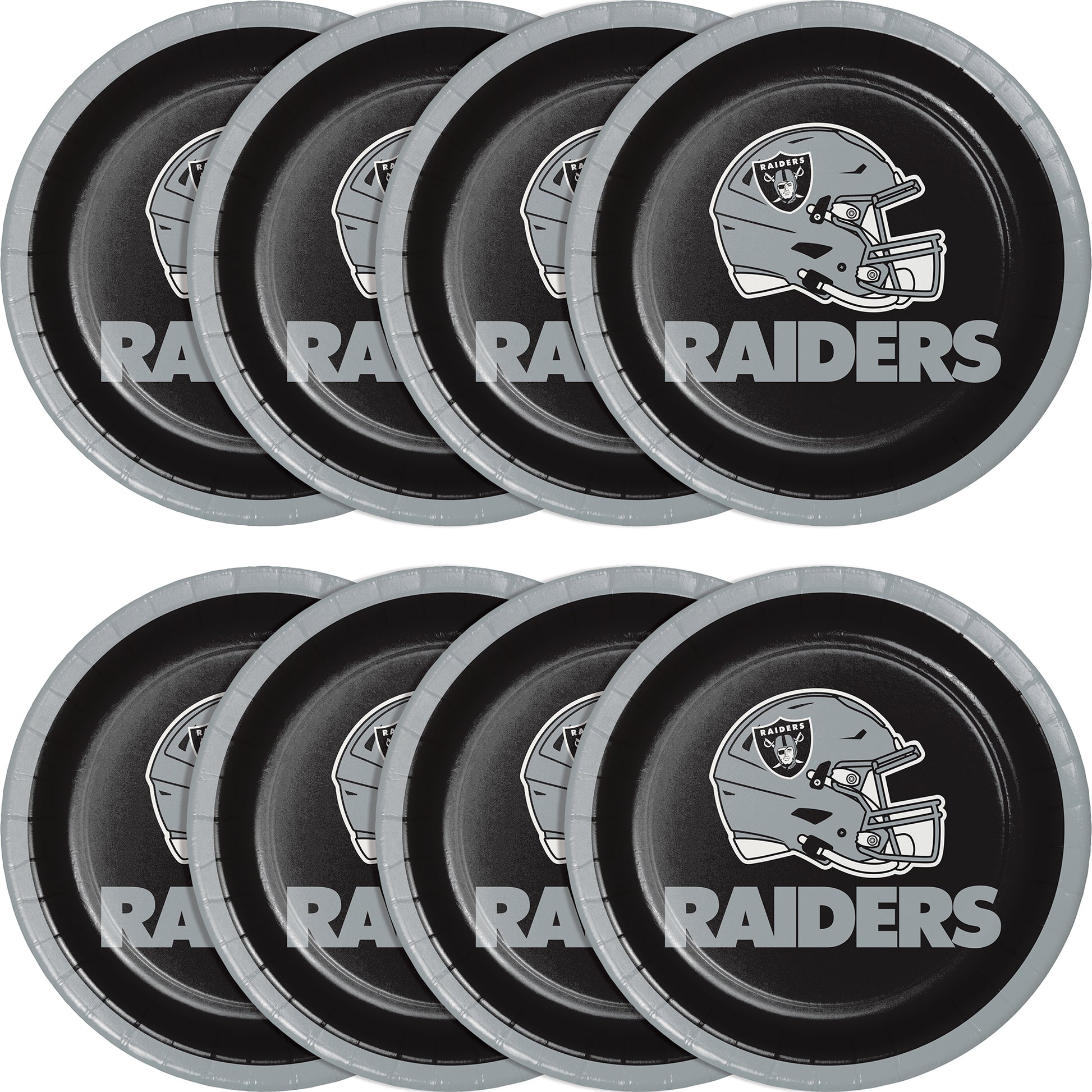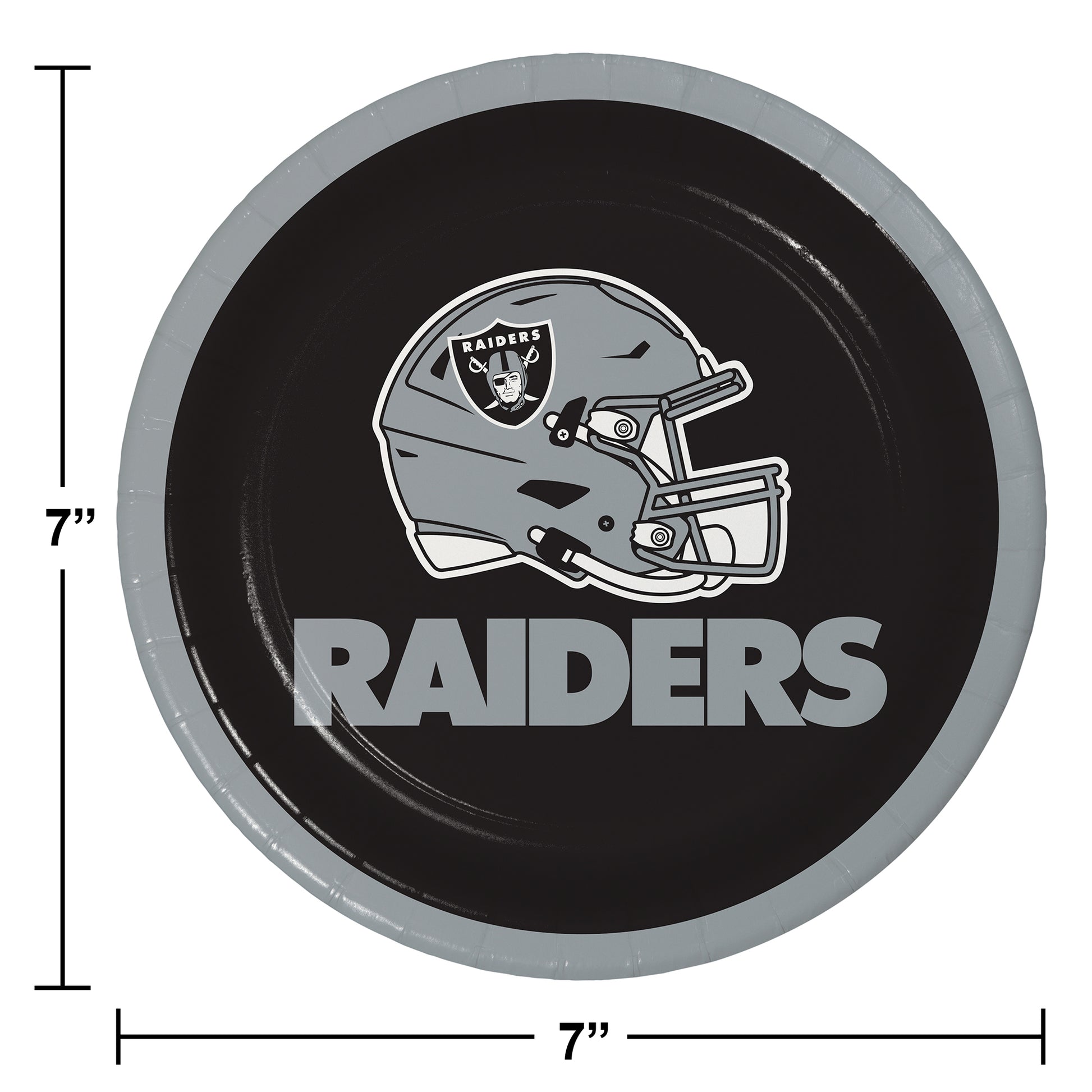 Break out the desserts - it's time to party! Fans can serve fellow football fanatics brownies and cookies on these wholesale Las Vegas Raiders Dessert Plates. Featuring the Raider helmet logo and classic colors, adding a fun football accent to game day has never been easier. Coordinate our bulk paper plates with the wholesale Las Vegas Raiders party supplies this season.