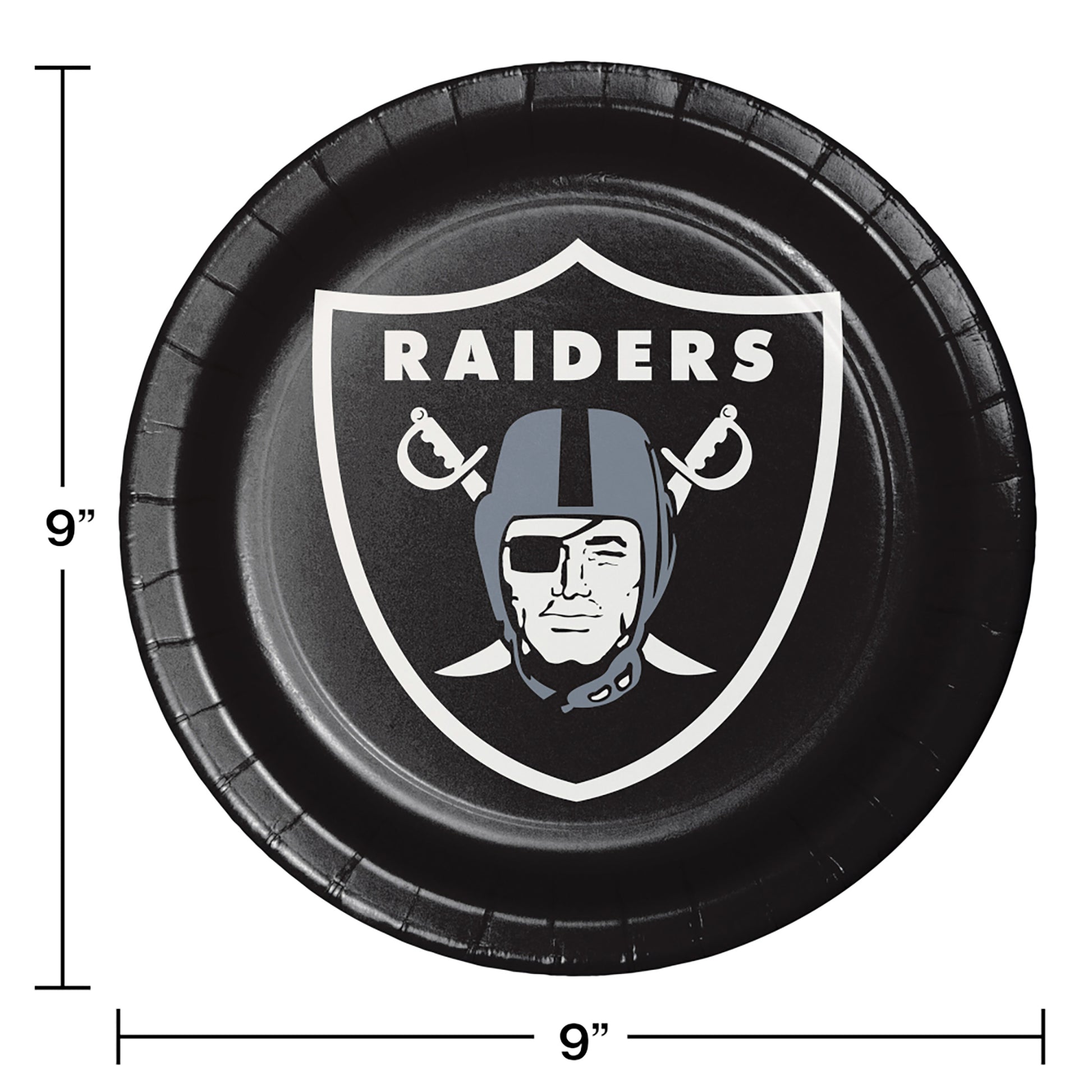 Complete the gameday buffet with our wholesale Las Vegas Raiders Dinner Plates. Made for easy cleanup, these disposable paper plates are the perfect addition to football viewing parties and tailgating events. Guests will love to load up these Raiders paper plates with all kinds of goodies. Pair our collection of NFL wholesale plates with Las Vegas napkins and tablecovers for the ultimate fan experience.