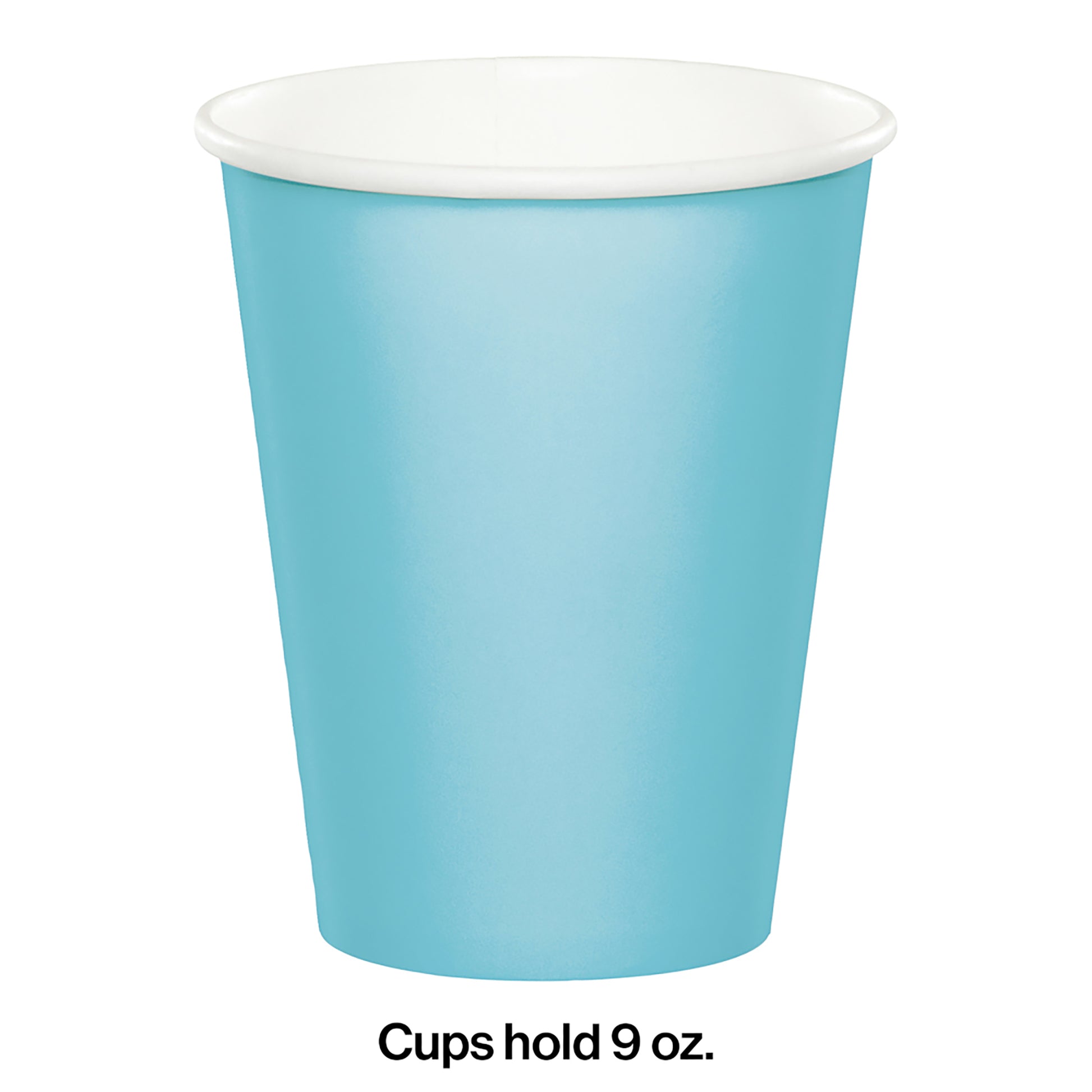Balance the table décor with charming style and soft color at catered events or gatherings with the Pastel Blue Hot & Cold Cups. Every package contains 24 sturdy paper cups in beautiful pale blue that hold 9 ounces of hot or cold beverages. Stack these cups next to the punch bowl or coffee dispenser, or arrange one at each place setting for guests to use. The pastel blue is perfect for receptions, showers or birthdays and the color complements numerous printed theme ensembles. The Pastel Blue Hot & Cold Cups are sold in packages of 24 with 10 packages per case.