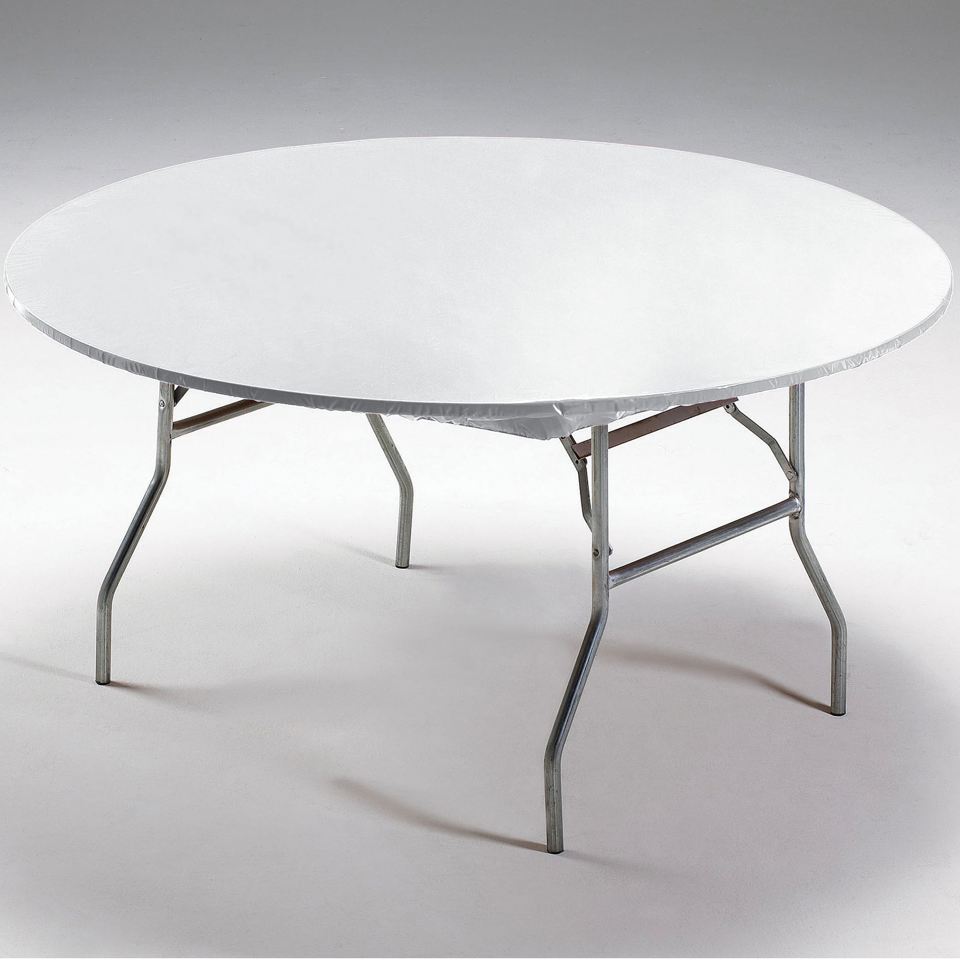 Check out this convenient, disposable tablecloth designed to stay in place for indoor or outdoor events. The White Stay Put Round Tablecloth is constructed of durable plastic and features elastic around the entire edge for securing to tabletops. The wipe clean cover is an ideal solution for receptions, banquets, trade shows, outdoor dining and more. The elastic helps keep the cover from shifting or blowing away and the bulk case quantity is easy to stock and cost effective. The white fitted tablecloth is used by event planners, caterers, restaurants, food vendors and more. Set-up and clean-up have never been easier. The White Stay Put Round Tablecloth measures 60" and is sold in individually wrapped packages with 12 packages per case.