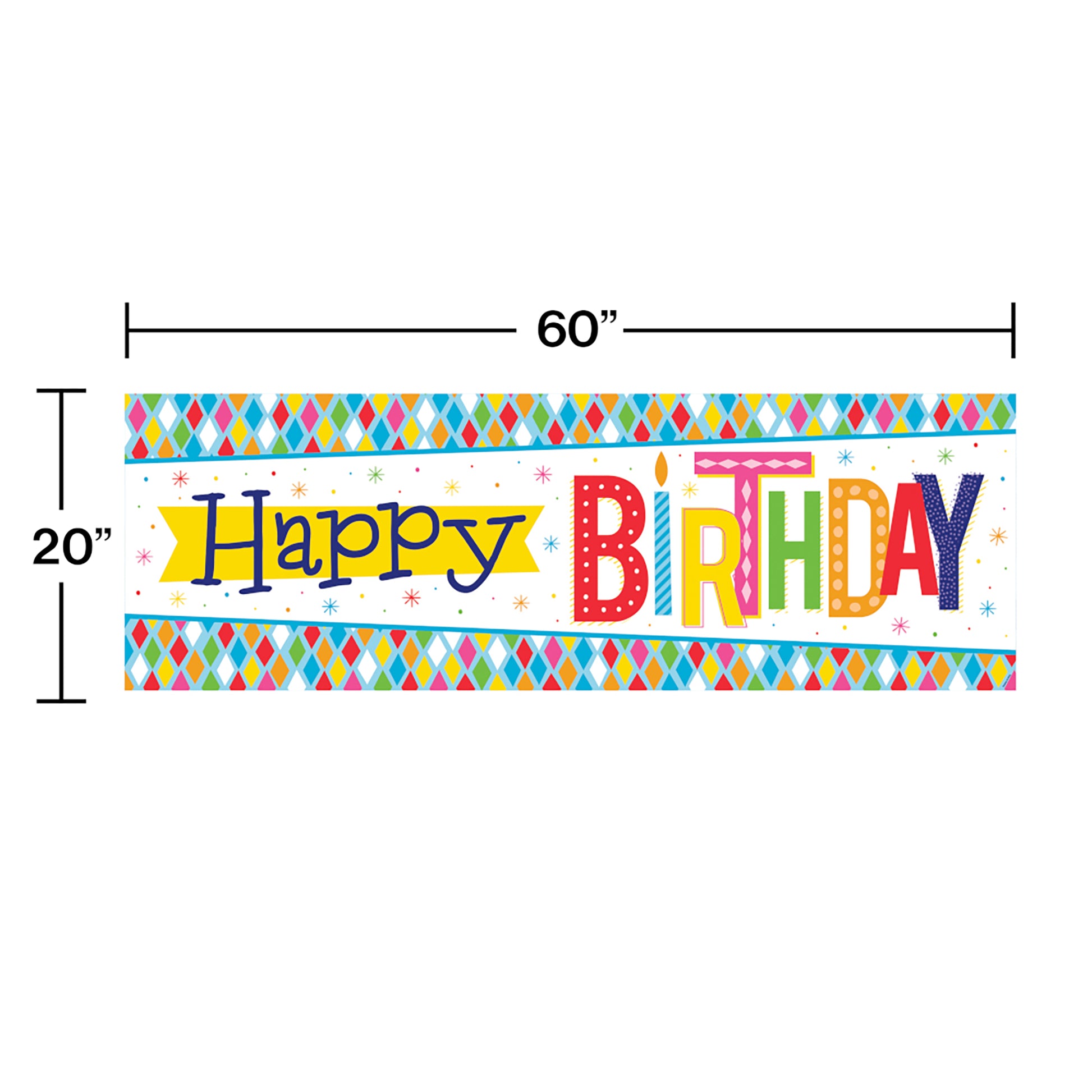 Liven up that special day with a banner that screams celebration when you decorate with the Bright Birthday Giant Party Banner. The plastic banner measures 20" x 60" and features the words Happy Birthday" in colorful letters surrounded by colorful stars and set against a white theme. Sold individually, the plastic table banner coordinates with all Bright Birthday party supplies. With wholesale pricing and bulk quantities, our Bright Birthday Giant Party Banners 6 ct are perfect for event planners, caterers, and home hostesses alike.