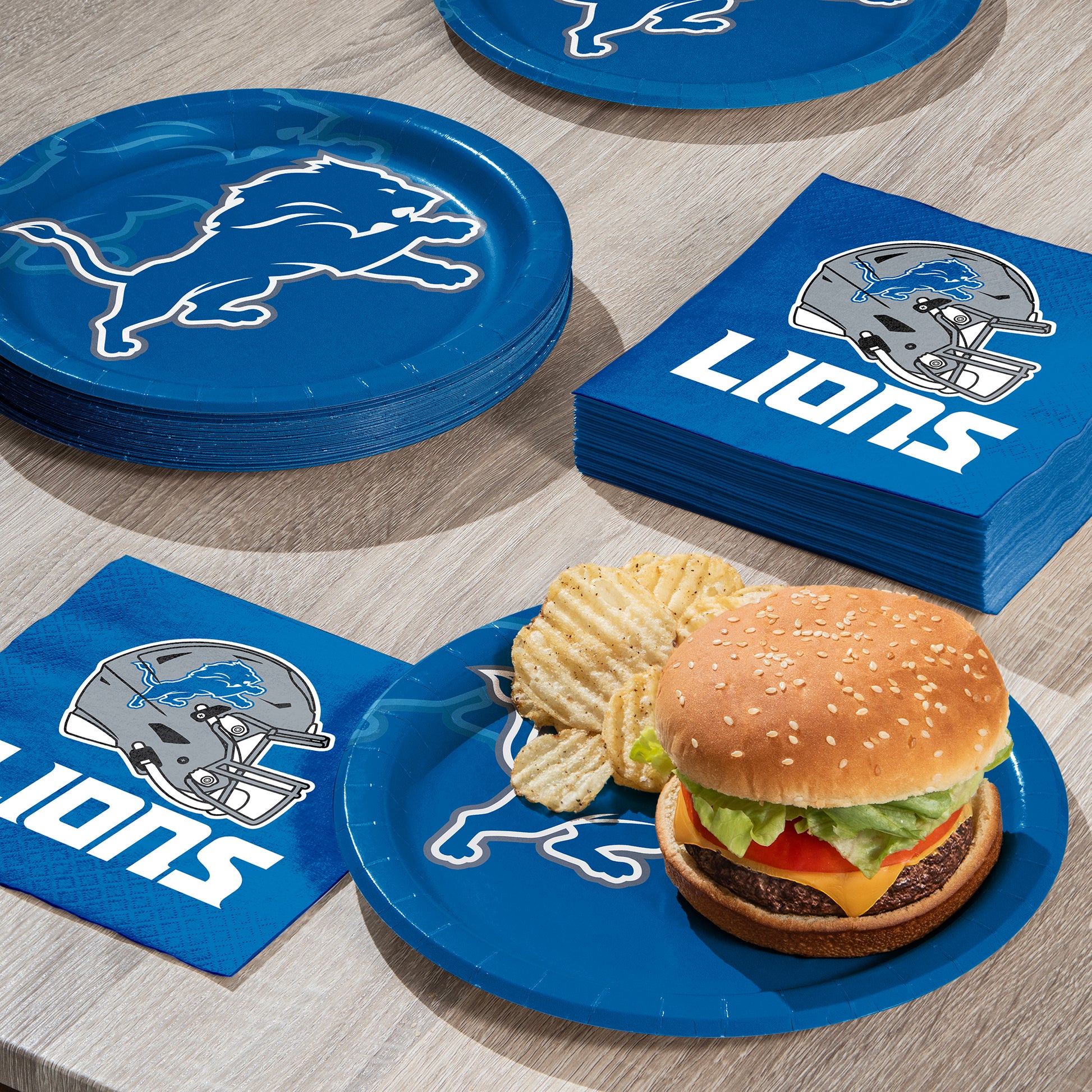 Create the ultimate fan experience as you cheer on the Lions with the Detroit Lions Plates. The 9" dinner plates are perfect for holding main course entrees & buffet style meals and can be used at tailgates, viewing parties, pregame meals, and postgame celebrations. These round plates can be mixed and matched with other Detroit Lions party supplies for an epic football Sunday. With wholesale pricing and bulk quantities, our Detroit Lions Dinner Plates 96 ct are perfect for event planners, caterers, and home hostesses alike.