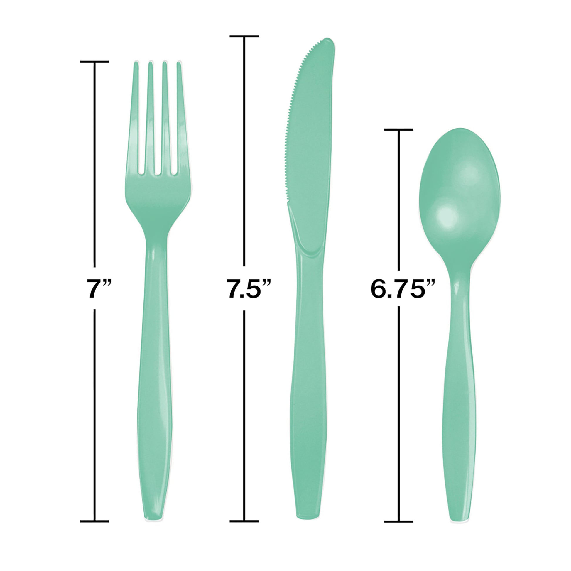 Give your guests a premium dining experience that matches your party color atmosphere with the Fresh Mint Green Plastic Cutlery Assortment. These heavyweight plastic utensils will bring a unique touch to your table setting. With wholesale pricing and bulk quantities, our Fresh Mint Green Assorted Plastic Cutlery 216 ct are perfect for event planners, caterers, and home hostesses alike.