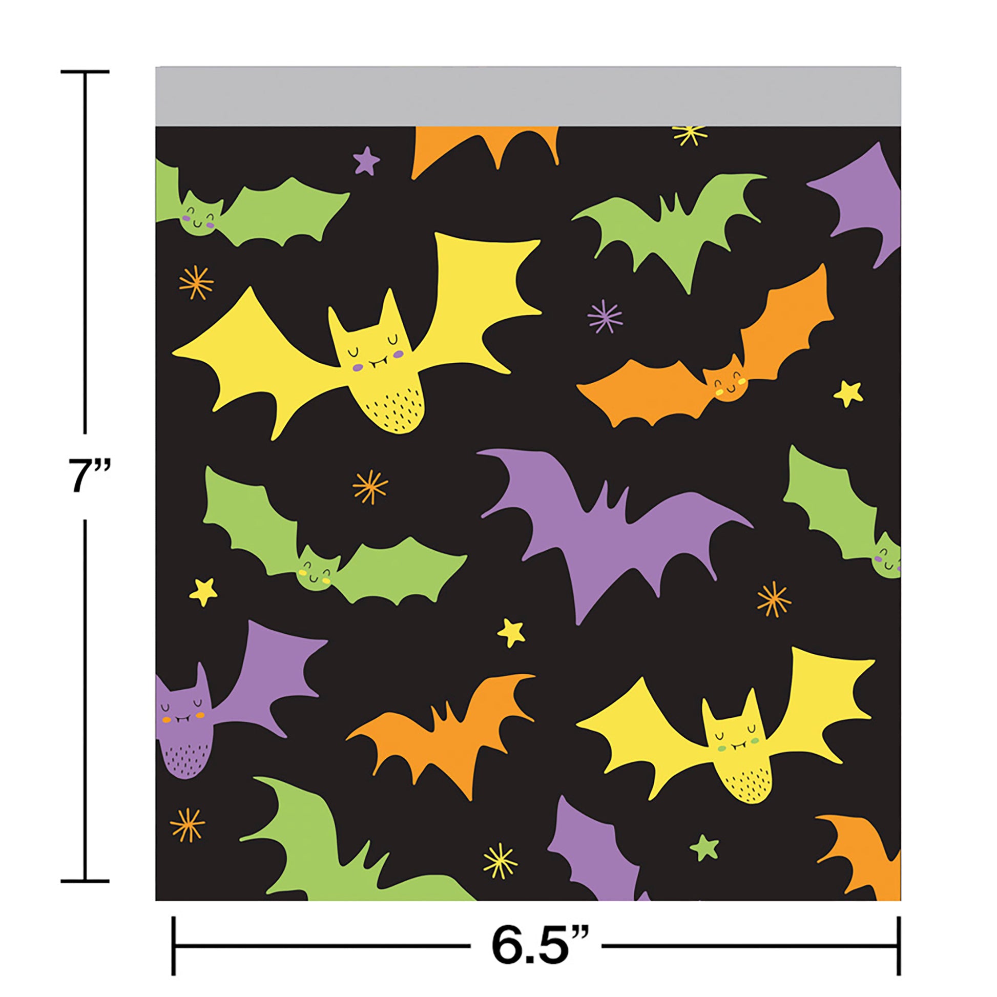 Elevate your lunch this season with Halloween Bats Sandwich Bags. Featuring yellow, green, orange, and purple bats against a black background, these 7" x 6.25" zipper bags conveniently store sandwiches or snacks for you to enjoy in a fun way. Ideal for packing festive lunches, picnics, and to hand out as party favors with treats inside. Sold in cases of 12 packs, each pack has 10 sandwich bags. Pair with other Halloween party supplies to ensure a successful celebration.