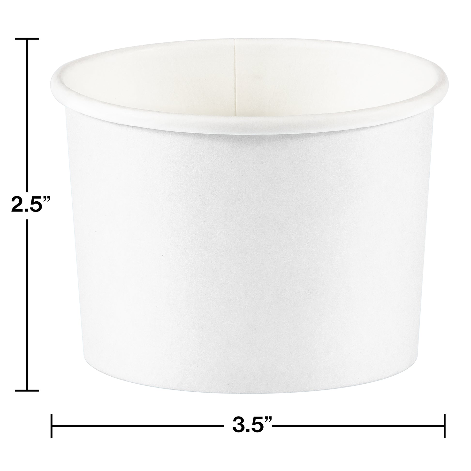 Upgrade the spread of tasty food at your next party with help from our White Treat Cups. These treat cups measure 2.5" x 3.5" and are made from sturdy boardstock. They're perfect for serving small foods like fruit salad, popcorn, nuts, and more. Their simple white design will complement any occasion. Each order of White Treat Cups includes 96 treat cups. With wholesale pricing and bulk quantities, our White Treat Cups 96 ct are perfect for event planners, caterers, and home hostesses alike.