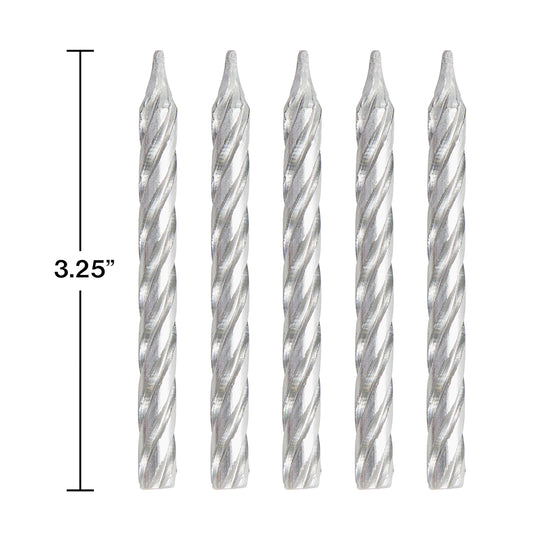 Silver Glitter Happy Birthday Cake Toppers 12 ct