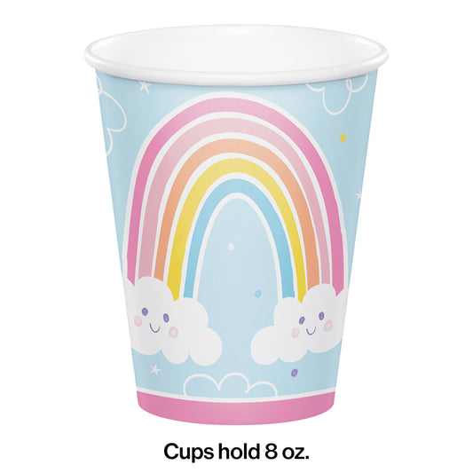 Here's a sweet birthday party collection for a sweet guest of honor! Our Happy Rainbow Party Supplies feature rainbows, smiley face clouds, and heart and star accents, all in sweet pastel colors. Rainbow sherbet punch would be a fun choice for serving in the paper cups, while rainbow fruit skewers would be perfect for the dessert plates. Accent it all with our coordinating Candy Pink and Pastel Blue solid party supplies. It will surely be a rainbow of fun when you celebrate with our Happy Rainbow Party Supplies. Our bulk quantities and prices are perfect for retailers and home hostesses alike!