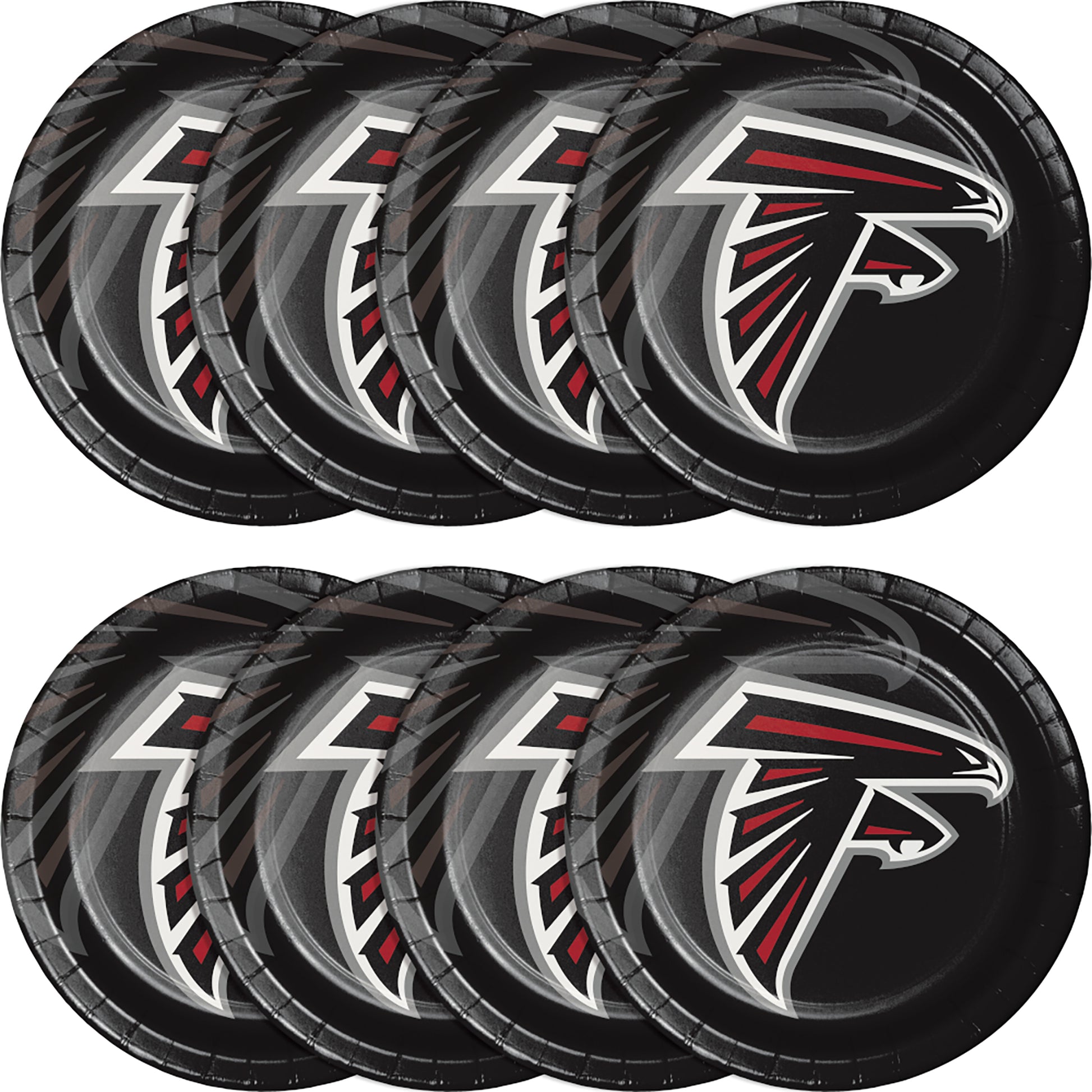 Cheer on your favorite NFL team with our wholesale Atlanta Falcons Dinner Plates. Fans will love to serve themselves hotdogs and hamburgers on these wholesale paper plates displaying a red and black logo. Stock your shelves with paper plates and the entire line of Atlanta Falcons tableware for a complete party offering. Being the ultimate fan hub has never been easier with our bulk Falcons dinner plates.