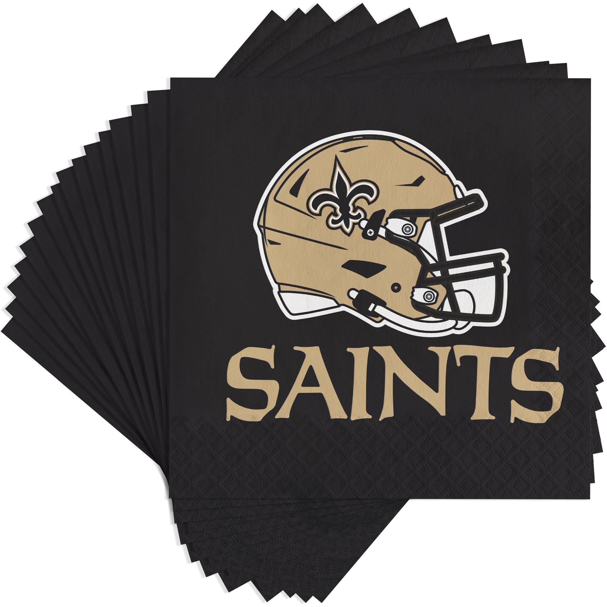Fans will cheer for the Saints in style with our wholesale New Orleans Saints Luncheon Napkins. Made to help minimize spills on game day, these bulk luncheon napkins are a tailgate must-have. Sold in bulk, our NFL napkins are an ideal addition to your party shelves. These napkins coordinate with our NFL plates and cups for a complete New Orleans football look. Stock your shelves this season with our selection of wholesale party napkins.