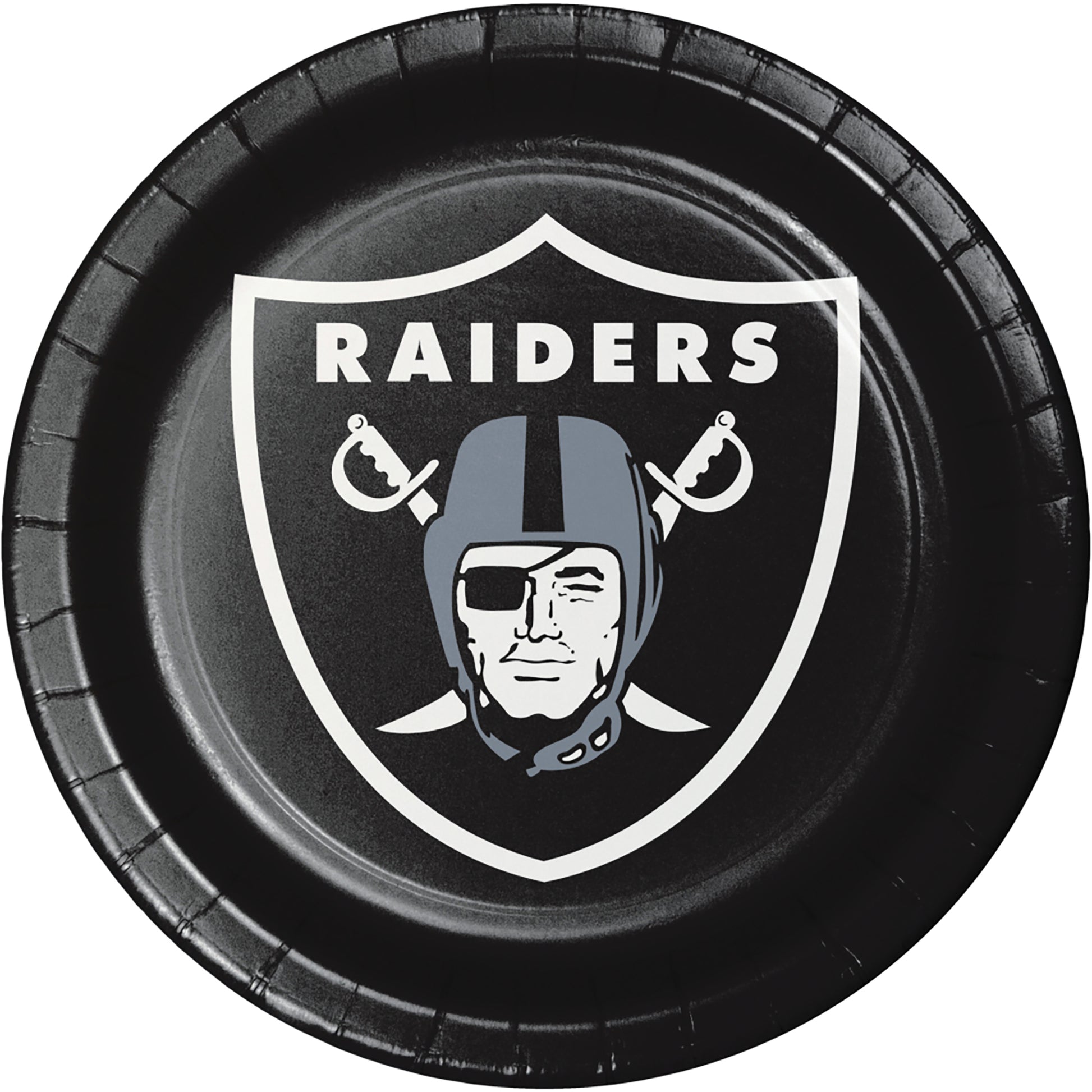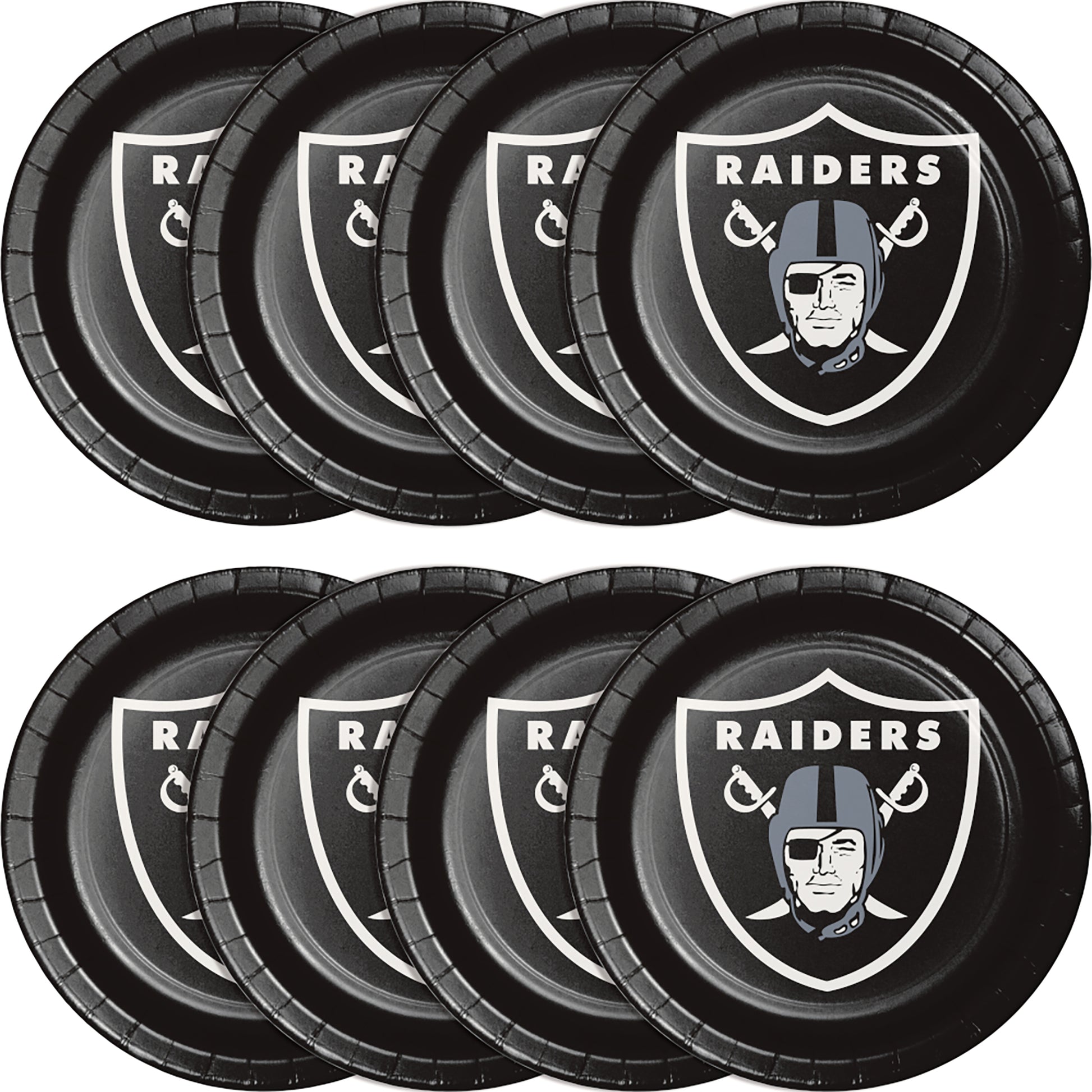 Complete the gameday buffet with our wholesale Las Vegas Raiders Dinner Plates. Made for easy cleanup, these disposable paper plates are the perfect addition to football viewing parties and tailgating events. Guests will love to load up these Raiders paper plates with all kinds of goodies. Pair our collection of NFL wholesale plates with Las Vegas napkins and tablecovers for the ultimate fan experience.