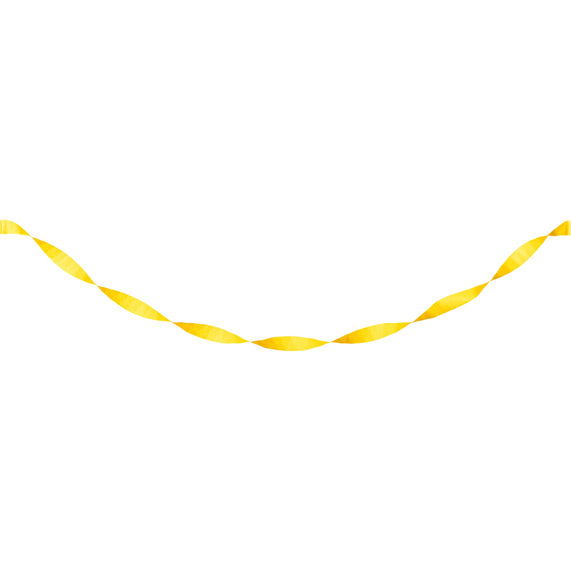 School Bus Yellow Streamers are sold in a package containing 81 feet of crepe streamer. Streamers are a simple and economical way to add pops of color throughout the party venue at baby showers, bridal showers, birthday celebrations, and more. At 1.75 inches wide, the streamers can be mix and matched with other streamer lengths in complementary colors. Simply twist them together and hang from doorways, stair rails, mantels, buffet tables, and even ceilings and walls. The School Bus Yellow 81 Foot Crepe Streamer is packaged individually with a case quantity of 12 packages.