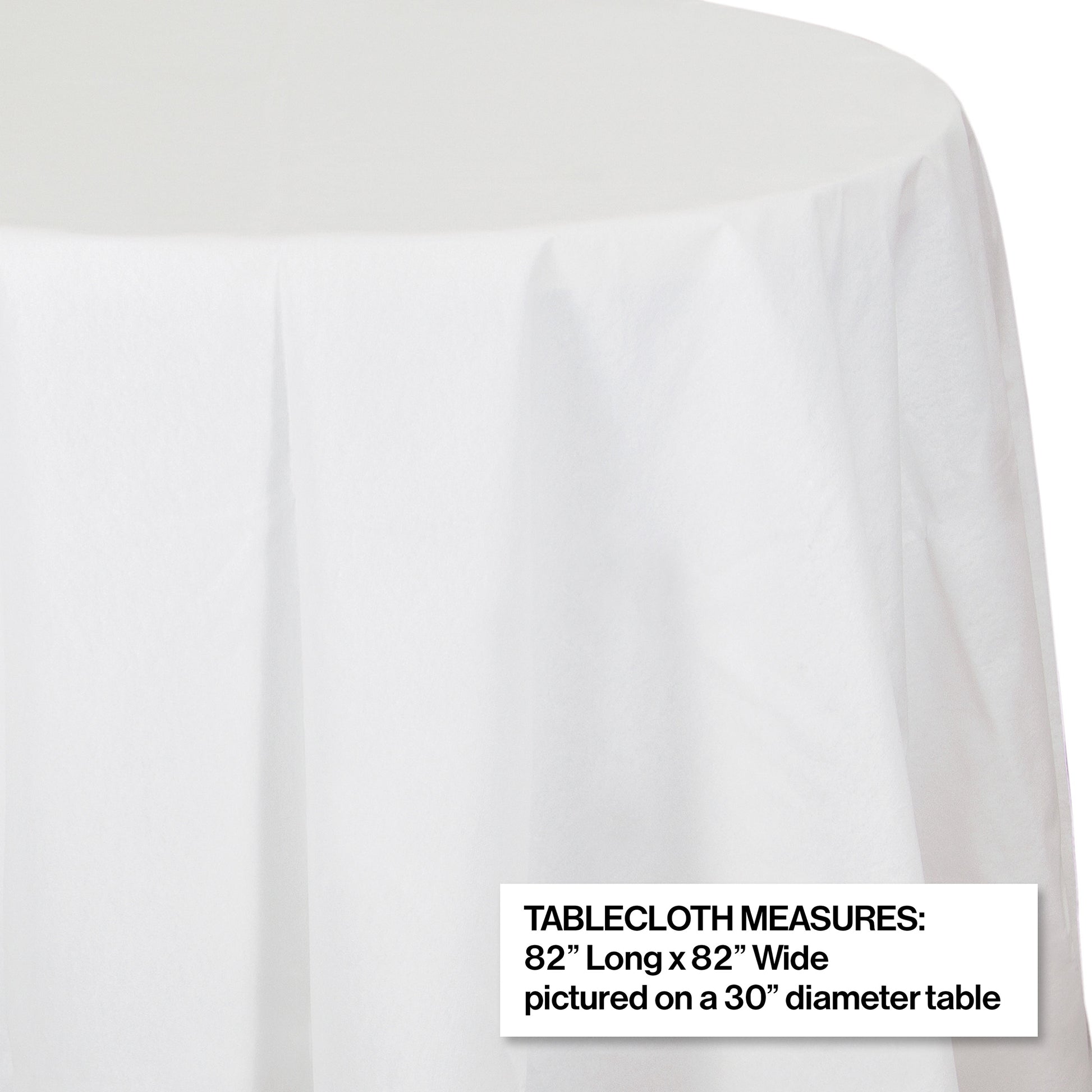 The White Better than Linen Octy-Round Tablecover, part of the Form & Function line of elegant, easy and economical entertaining products, is ultra soft, noticeably thicker and much more absorbent than real linen. The 82" tablecover has a textile-like surface and drape, but the convenience of being disposable and can be used for almost any occasion including weddings, bridal showers, birthdays, baby showers, holiday celebrations, graduation parties and more! Proudly made in the USA, each tablecover is packaged individually and sold in a wholesale case count of 12. Individual package dimensions measure 14" x 11.75" x 1".