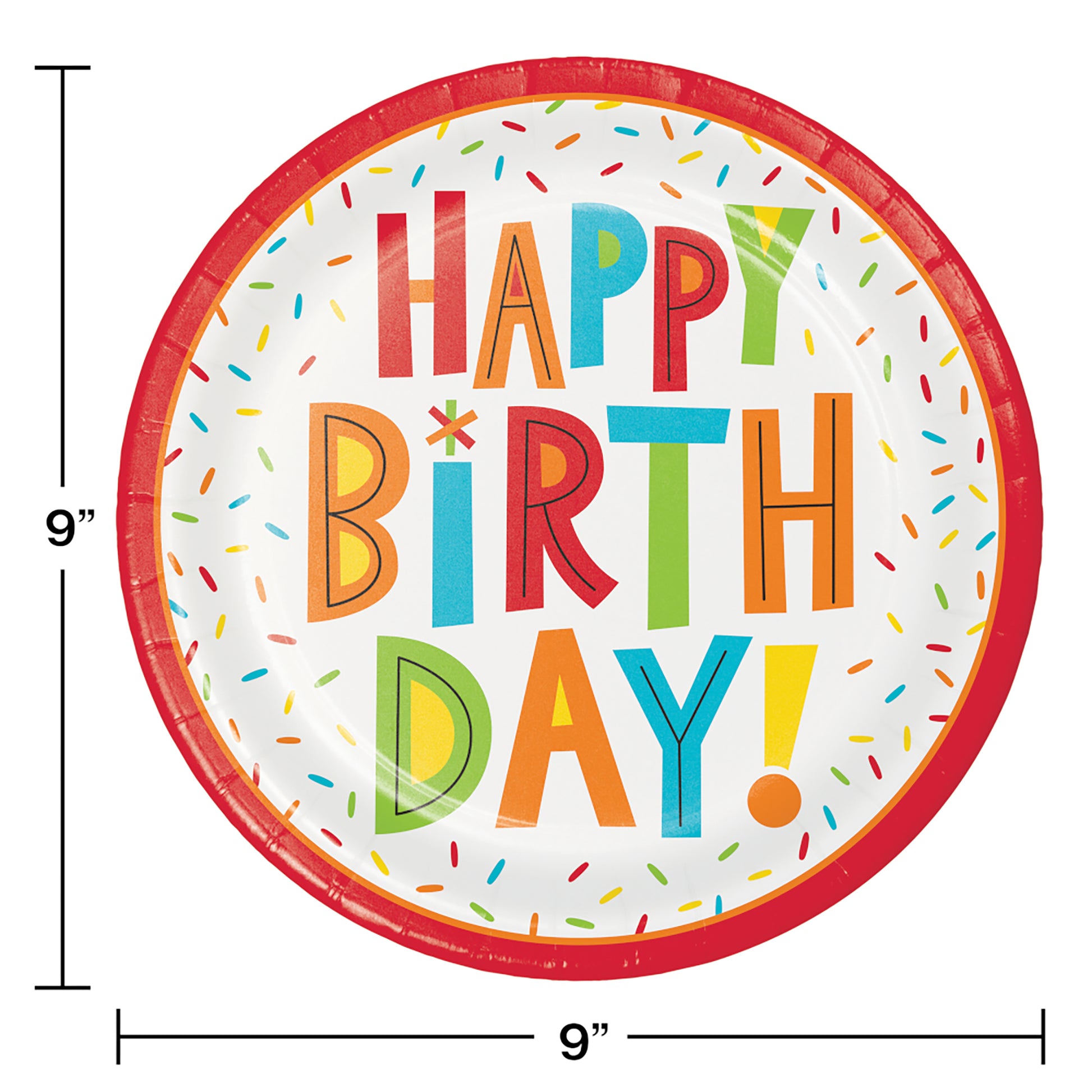 Complete your party theme with these Birthday Fun Paper Plates. Featuring a colorful design with the phrase "Happy Birthday" centered in the middle, these plates are the perfect addition to your celebration. Measuring 9" and sold in quantities of 96, these plates can be paired with any other Birthday Fun party supplies. With wholesale pricing and bulk quantities, our Birthday Fun Dinner Plates 96 ct are perfect for event planners, caterers, and home hostesses alike.
