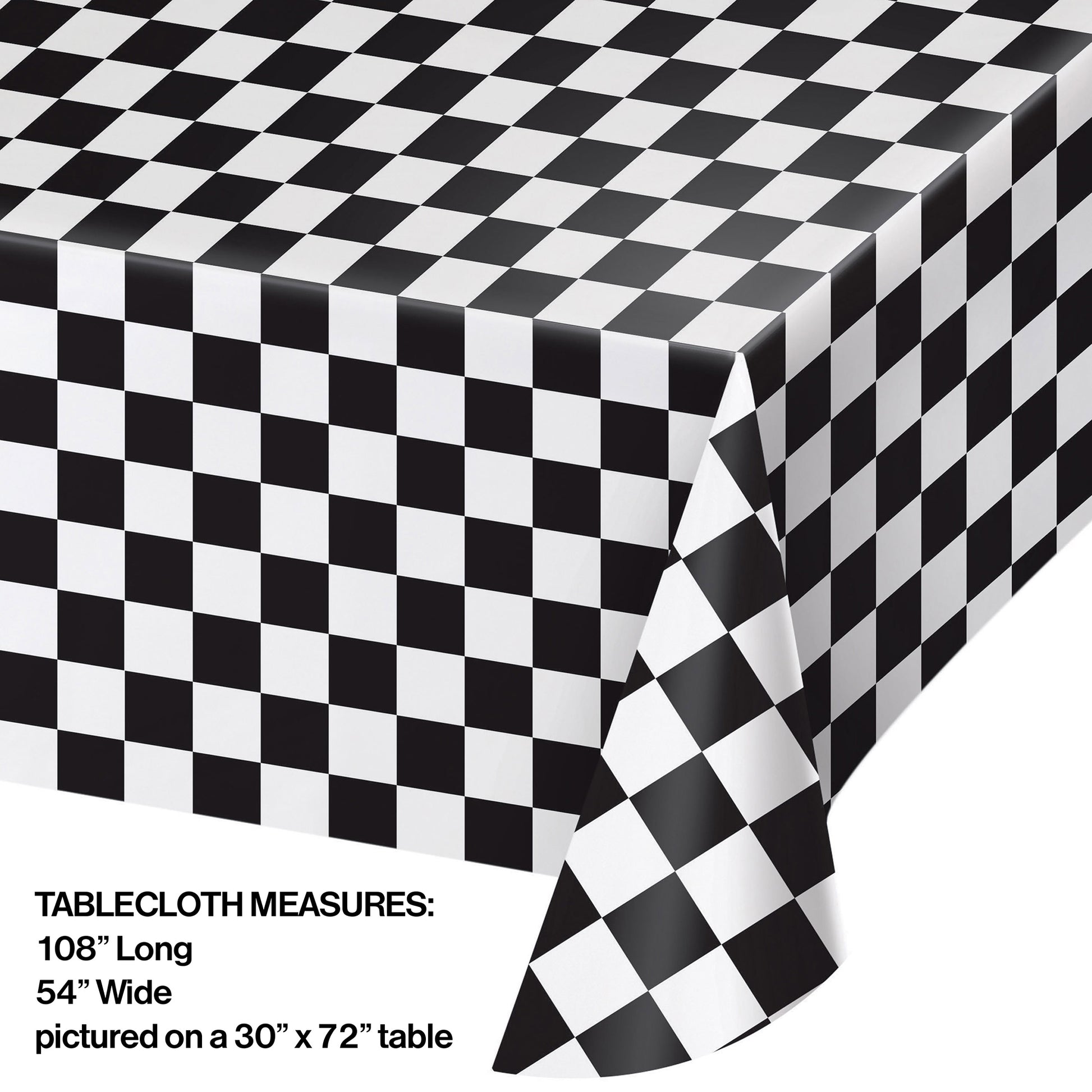 Get your thrilling race day party started with the Black Check Plastic Tablecloth. Any race filled afternoon needs this classic checkered flag covered table cover to keep the party clean and comfortable! Be sure to include our other race day themed party supplies when using this item. With wholesale pricing and bulk quantities, our Black Check Plastic Tablecloths 12 ct are perfect for event planners, caterers, and home hostesses alike.