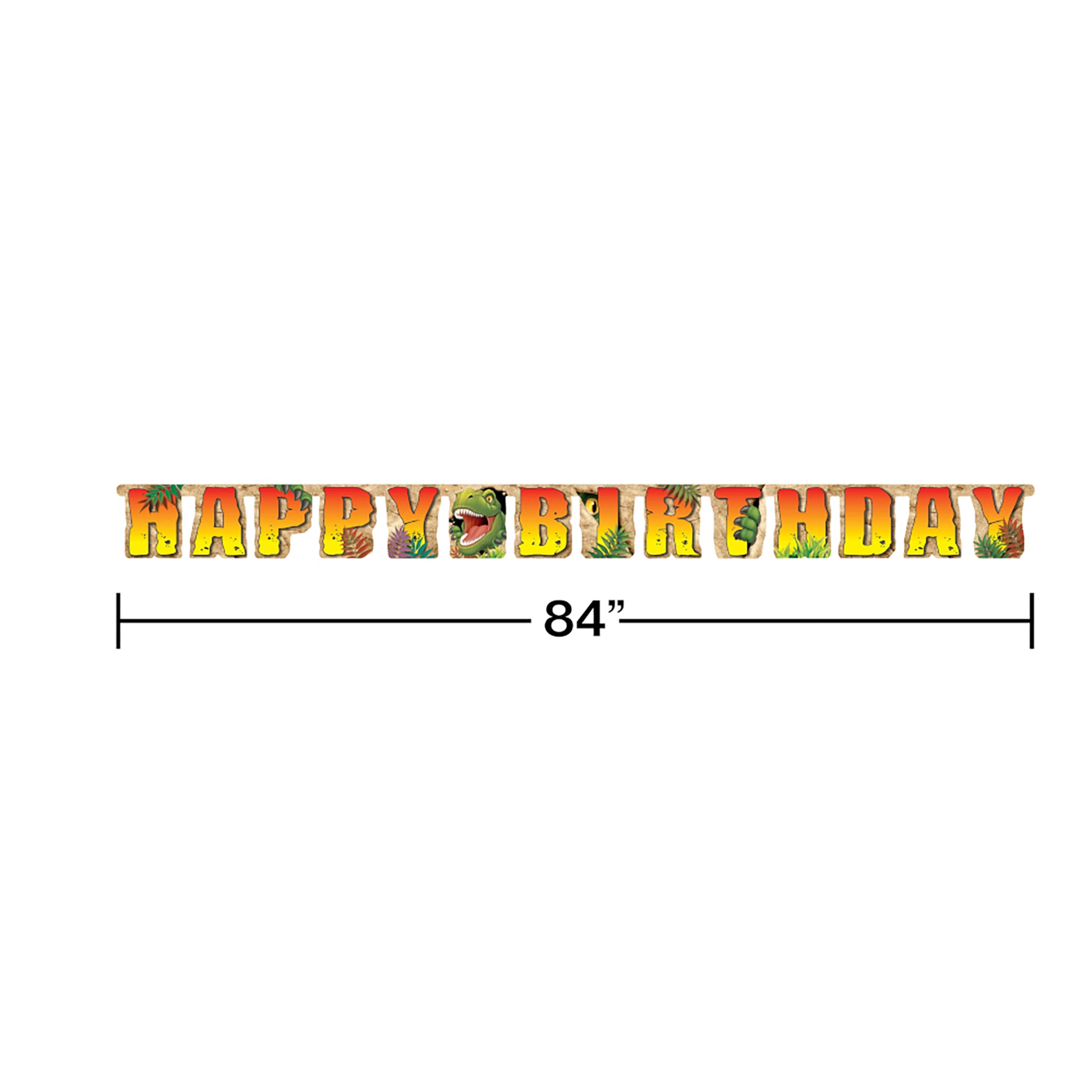 Wholesale Dino Blast Banners announce Happy Birthday" greetings with a ferocious T-Rex making an appearance in the center. Each banner is constructed with sturdy cardstock cutouts and can be hung in doorways, across windows, or draped at the front of a buffet table. The bulk jointed banners coordinate with tableware and decorations from the complete collection of Dino Blast party supplies.