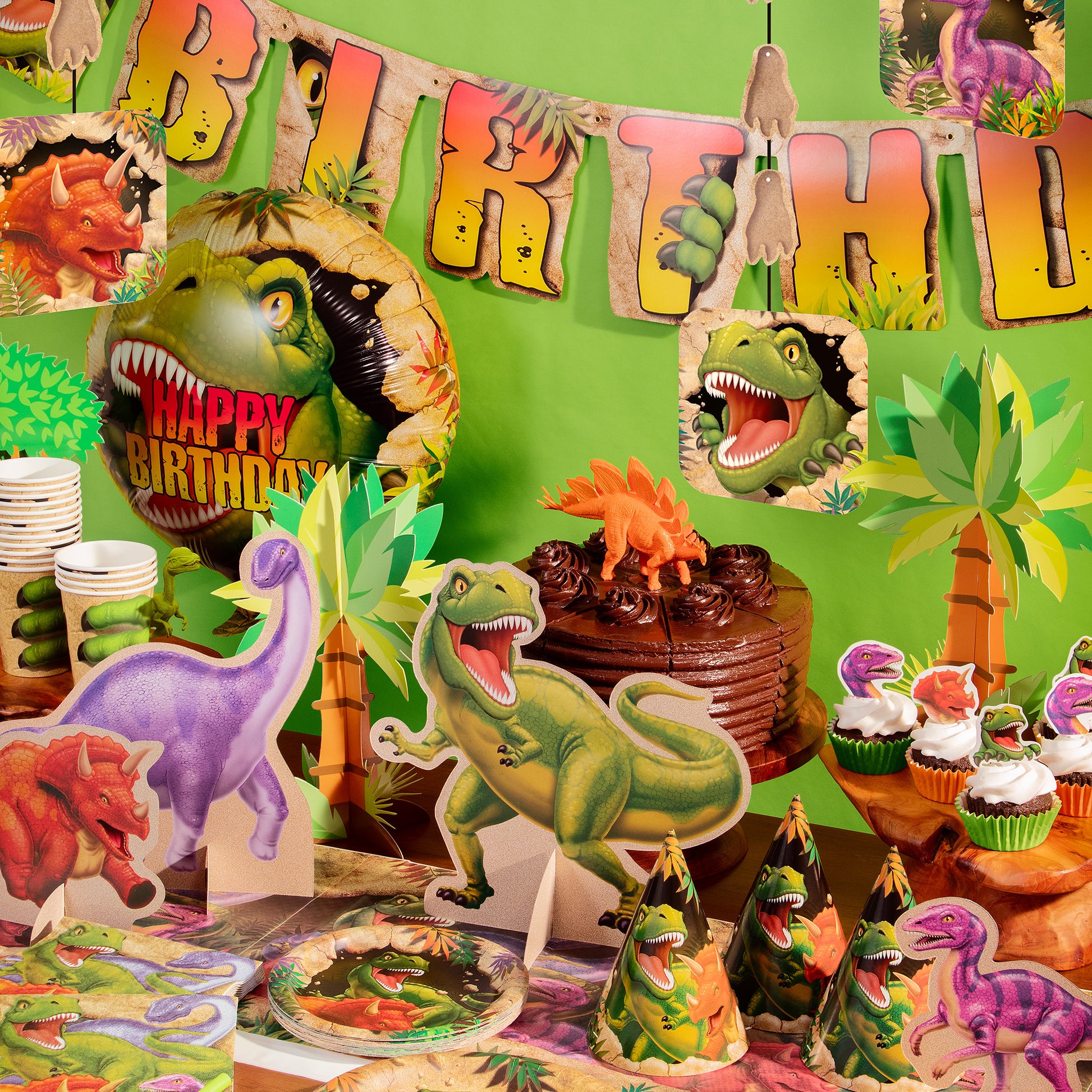 Take a bite out of the perfect party treat accented by ferocious Dino Blast Cupcake Toppers. Bulk packages of cupcake toppers feature three dinosaur designs including the T-Rex, Triceratops, and Velociraptor atop a white pick. The cupcake toppers coordinate with all of the party supplies featured in the prehistoric Dino Blast ensemble.