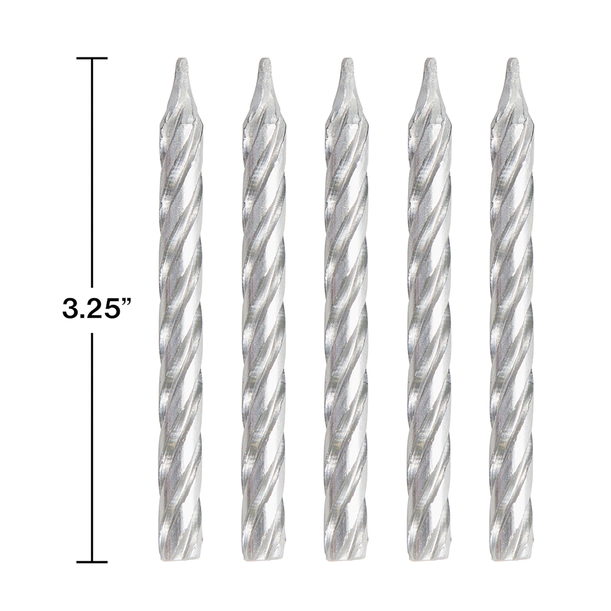 Make your dreams come true with these Silver Birthday Candles. Featuring an elegant silver design, these candles are the perfect thing to complete your party theme. Measuring 2.25", these candles can be paired with any other party supplies. With wholesale pricing and bulk quantities, our Silver Birthday Candles 288 ct are perfect for event planners, caterers, and home hostesses alike.