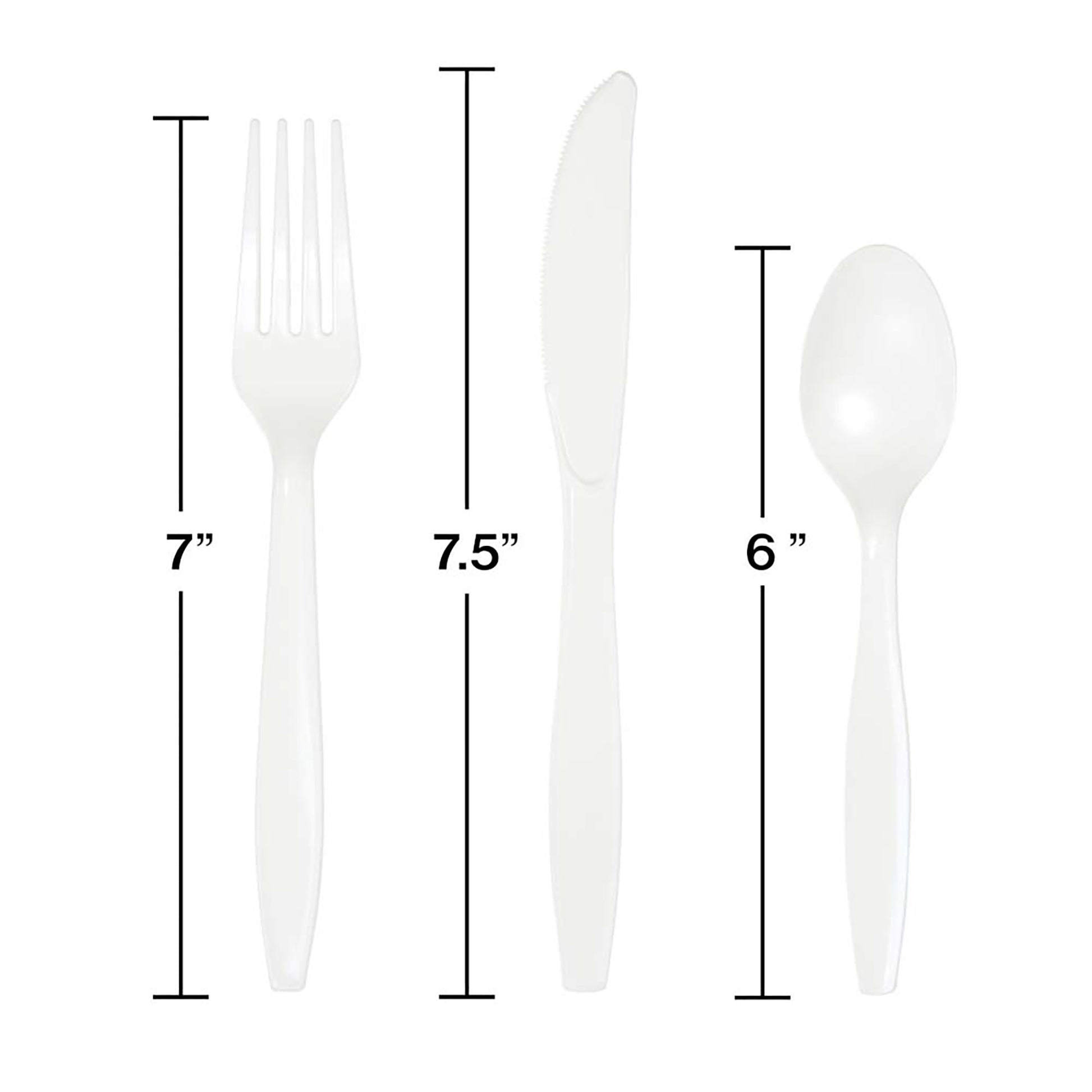 Give your guests a premium dining experience that matches your party color atmosphere with the White Cutlery Assortment. These elegant cutlery sets come with 6 forks, 6 spoons, and 6 knives. These heavyweight plastic utensils will bring a unique touch to your table setting. With wholesale pricing and bulk quantities, our White Assorted Cutlery White 216 ct are perfect for event planners, caterers, and home hostesses alike.